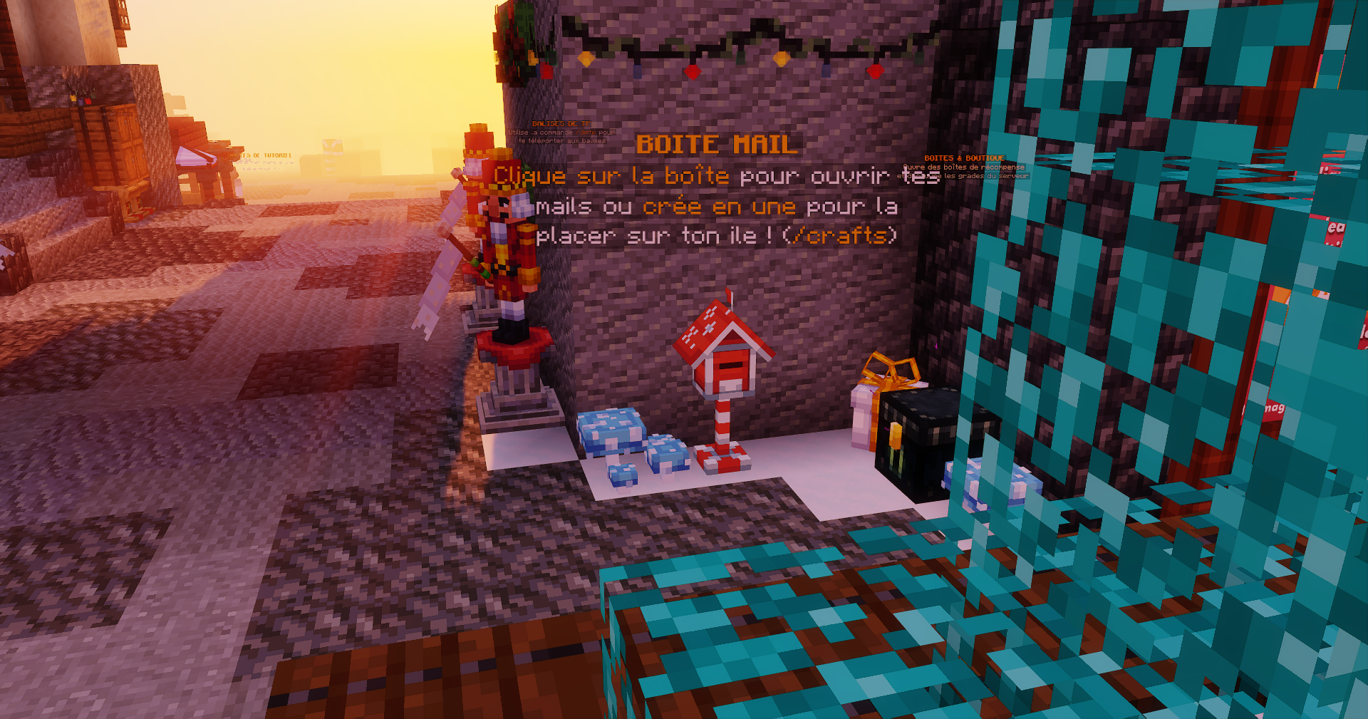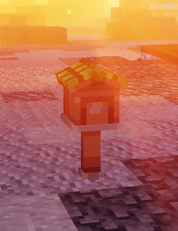 Bien, l'accès à ta boîte c'est fait, mais comment envoyer un objet pour un autre joueur ? Là aussi c'est très simple, tu dois juste utiliser la commande /mail send <pseudo> ! L'objet que tu tiens en main en effectuant dans la commande apparaîtra directement dans la boîte aux lettres du joueur.