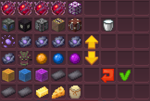 En cliquant sur l'icône recette, cela va te montrer tous les objets que tu peux créer. Si tu as les composants nécessaires pour créer l'objet, un petit V apparaîtra en dessous de la recette. Tu peux cliquer dessus pour que les ressources soient prises de ton inventaire et mises dans le multiblock. Il te suffira ensuite de cliquer sur le résultat obtenu pour créer l'objet !
