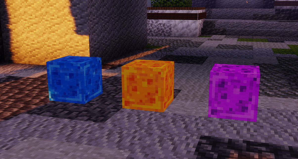 La première solution consiste en la création de blocs de slimes magiques ! Il en existe 3 ayant des puissances plus ou moins élevées. Tu seras propulsé dans la direction que tu regardes en montant sur le bloc.